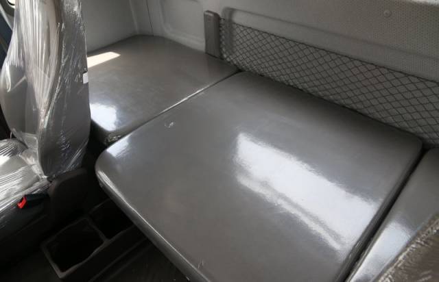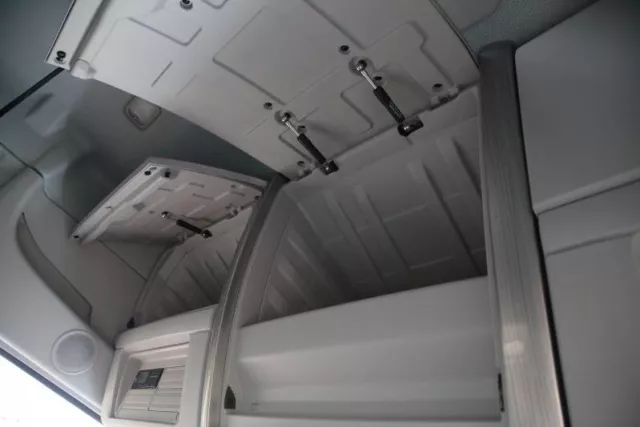 在驾驶室后侧,乘龙T7配有三段式可折叠卧铺,中间段卧铺可翻转成小茶几,这可让用户娱乐、休息两不误。