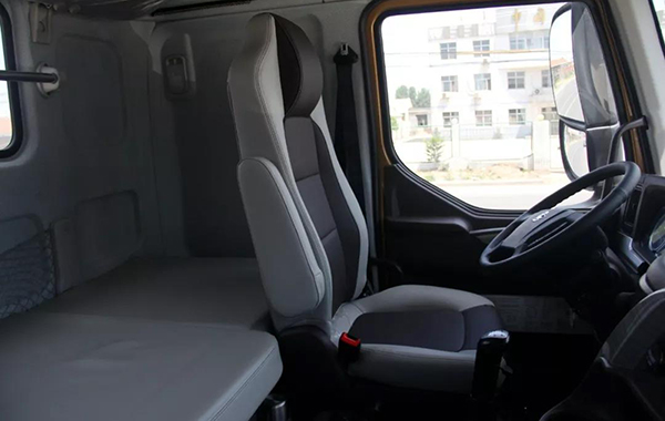 这款乘龙H7前桥采用了的是两片长跨距的抛物线板簧,配有前横向稳定杆,后桥为四片板簧,之前H7刚上市的时候我们就曾经试乘试驾过H7,而这台H7豪华版车型,在实际行驶过程中,经过全新优化后的H7其舒适性给人的感觉还是有很明显提升的。