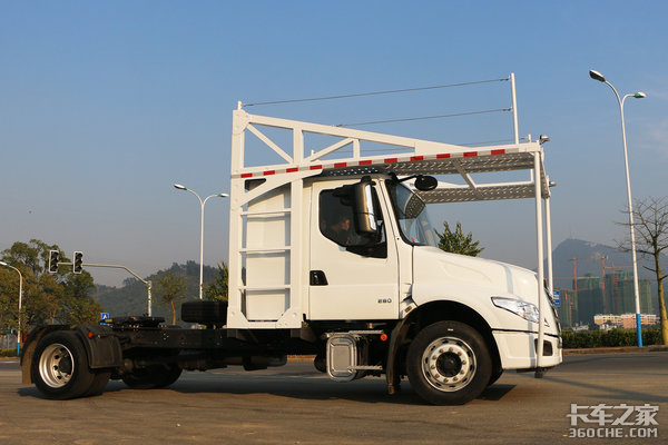 乘龙T5长头巧妙的利用了车顶的空间,相较于平头轿运可以多装一台,让愈发严格的轿运车在符合国内法规的前提条件下,可以多装载一辆从而让车主获得更大的收益。