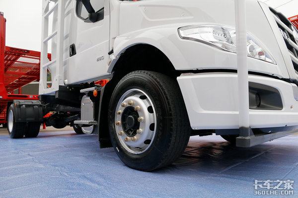 在高度问题的解决上,乘龙T5选用型号为315/60 R22.5的轮胎,降低整车的高度,尽可能将更多的高度空间让位与驾驶室和顶部在装载位。