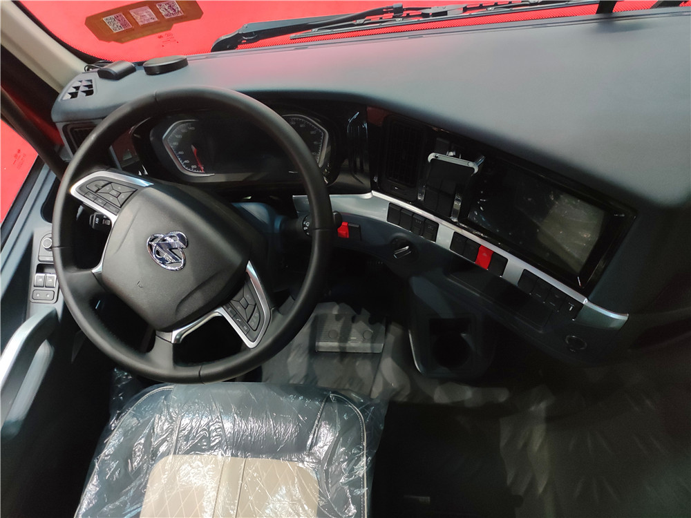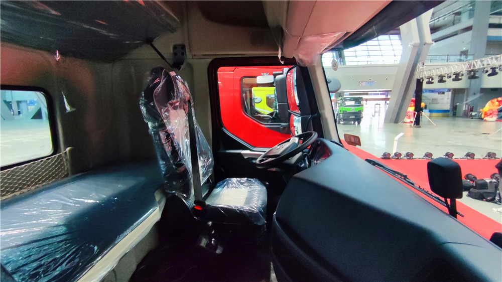 该车延续了人性化的环绕式工作台,常用按键触手可及。全新造型多功能方向盘按键更加符合运输人的使用需求。对称式的仪表盘带有液晶大屏显示,在工作台上还集成了多媒体娱乐系统。